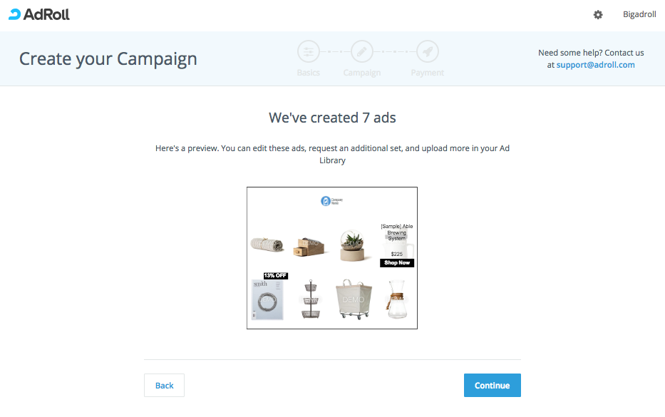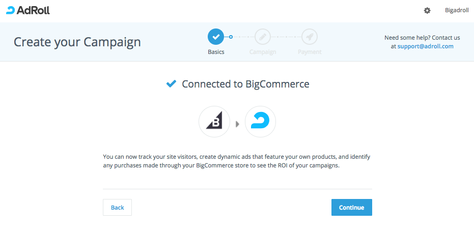 AdRoll has partnered with BigCommerce to help you attract, convert, and grow audiences for your BigCommerce store. Within a few clicks, you can connect your store to a new or existing AdRoll account and start running campaigns across our extensive inventory without any developer or creative resources.