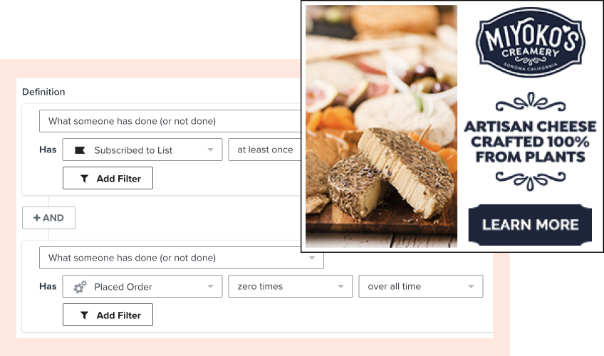 Leverage the power of first-party data to dynamically target your subscribers with relevant web ads. Sync your Klaviyo lists & segments to boost your ROAS by personalizing your campaigns and keep your audiences automatically up to date.
