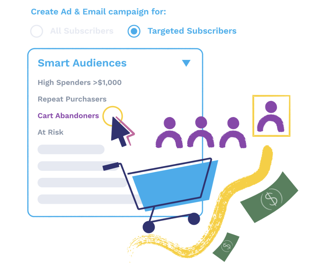 Our powerful AI technology recognizes when a shopper leaves without checking out, instantly triggering ads and emails that remind them of what they loved. Abandoned cart recovery campaigns keep your brand top-of-mind and bring high-intent shoppers back to complete their purchase.